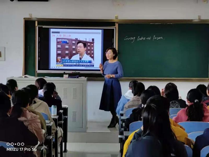 于景科首先来到《生药学》课堂教学现场,听取药学院赛春梅博士的授课,并给予了高度评价,他说,赛春梅老师将课程思政有机融入课堂教学,充分利用多媒体技术,注重调动学生参与教学积极性,为学生上了一堂高质量的好课。